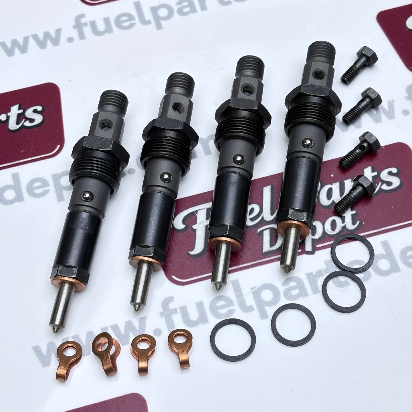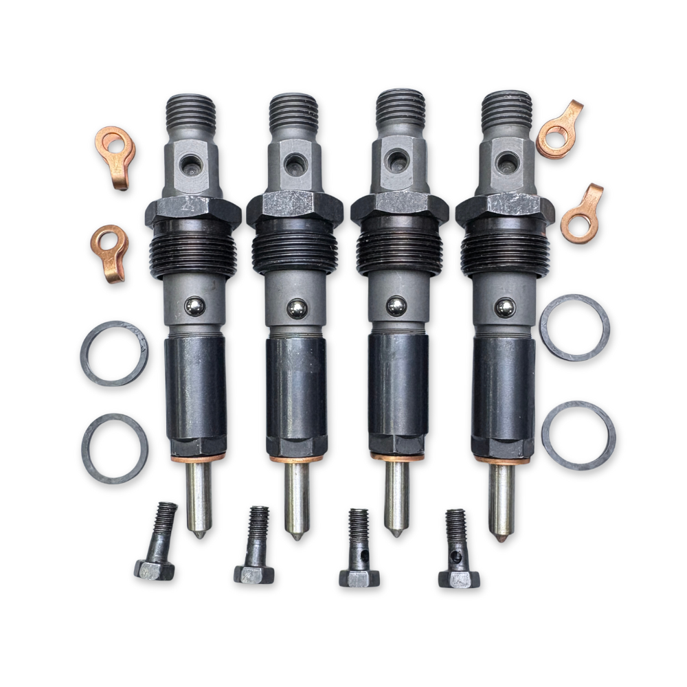 Precision fuel injectors engineered for optimal engine performance in New Holland CL190 and CASE P70 equipment. This set of four injectors delivers consistent fuel atomization and combustion efficiency for 430 and 445 engine series. Built to OEM specifications, these injectors ensure reliable starting, smooth operation, and reduced emissions. Direct replacement components that restore factory performance and fuel economy. Essential maintenance parts for agricultural and industrial machinery requiring dependable fuel delivery systems.