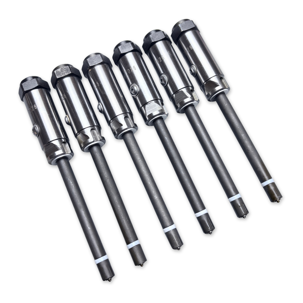 Precision fuel injectors engineered for Caterpillar heavy-duty engines including 3406B, 3412C, 3408E, D9R, and SR4 models. This set of six injectors (7W7026/0R3423) delivers optimized fuel atomization and combustion efficiency, critical for maintaining engine performance and fuel economy in demanding industrial and construction applications. OEM-compatible design ensures reliable fit and function. Essential replacement components for operators requiring consistent power output and reduced emissions. Ideal for fleet maintenance and engine rebuilds.